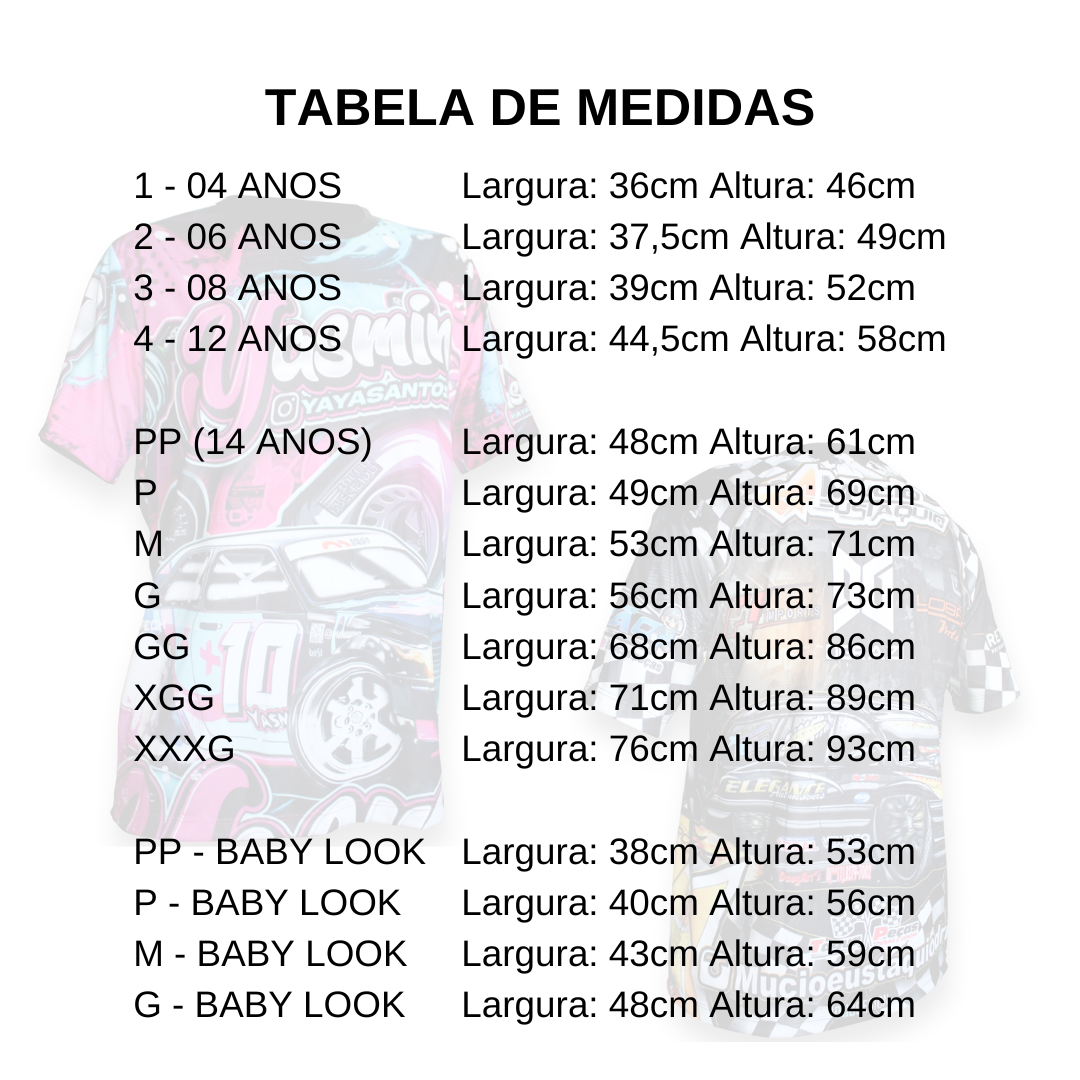 Disponível nos tamanhos: PP, P, M, G e XXGG
